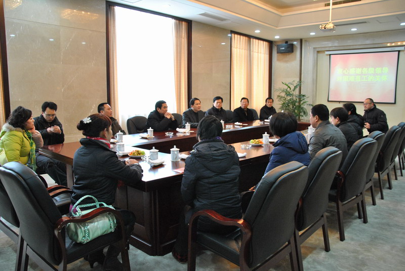 本报讯(通讯员 俞临新)新年伊始,,,,,,各地政府和公司企业都在举行新春慰问运动。。。。。。。上虞和内蒙等子公司相继睁开了类似运动,,,,,,获得了很好的社会回声。。。。。。。1月25日,,,,,,县政府和县总工会向导还专程赶到我公司向难题员工送温暖。。。。。。。县委书记温暖还亲自向我公司的5名难题员工送上了慰问金。。。。。。。当天下昼,,,,,,公司工会也开展了2010年度春节慰问运动。。。。。。。工会主席张丽娃、人力资源部副司理姚玉娥等一行马一直蹄地对难题员工和退休员工举行了家访,,,,,,并划分为他们送去了慰问金和慰问品。。。。。。。