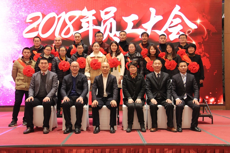 鸡年辛勤,,,,,,,,收官在即;;;;;狗年征途,,,,,,,,蓄势待发!2月10日上午,,,,,,,,公司在新昌万怡旅馆盛大召开2018年员工大会。。。。。。本次大会以“斗争实现价值 立异助力腾飞”为主题,,,,,,,,新昌基地员工、上虞今年会官网和上饶今年会官网先进代表加入了大会,,,,,,,,聚会由公司常务副总司理金志平主持。。。。。。