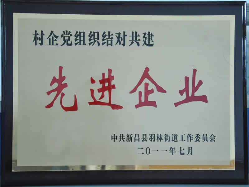 6月28日,,,,,,建党90周年运动前夕,,,,,,新昌县羽林街道组织开展评优表扬运动,,,,,,会上对2010年在推进全街道刷新、生长、稳固中做出效果的10个先进党组织、12家先进村企党建共建企业,,,,,,100名优异共产党员予以表扬。。。。。。。公司荣膺先进村企党建共建企业,,,,,,清静生产管理部黄玉峰和研发中心陈见阳被评为优异共产党员。。。。。。。