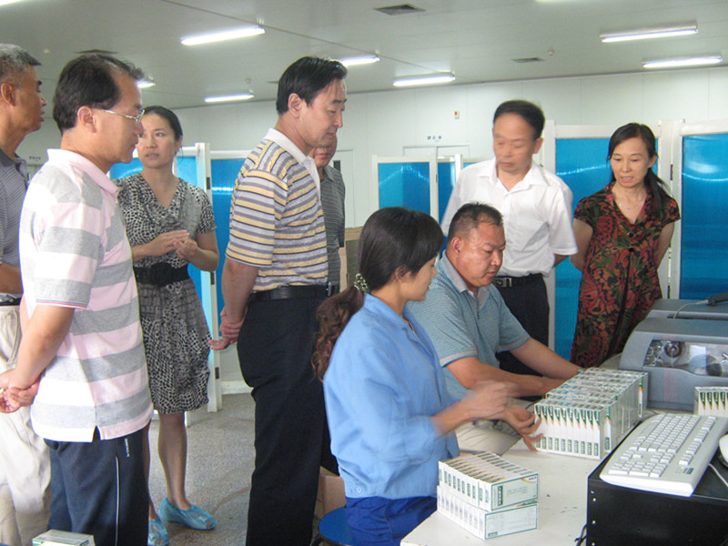 7月15日,,,,,,内蒙古自治区食物药品监视管理局副局长格日勒图、内蒙古自治区食物药品监视管理局安监处副处长魏荣保、孟凡生在巴彦淖尔市食物药品监视管理局局长韩志清、副局长马鸿昌的陪同下到内蒙古今年会官网药业有限公司调研。。。。。。。