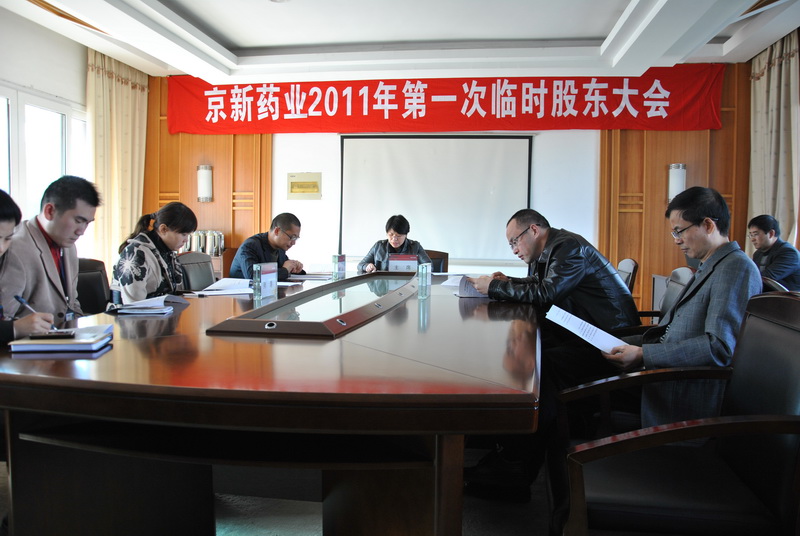 11月24日,,, ,,,,公司在行政楼三楼聚会室召开2011年第一次暂时股东大会。。。。 。。。受公司董事长委托,,, ,,,,公司副董事长陈漂亮女士主持聚会,,, ,,,,4名股东及股东授权代表加入了现场聚会,,, ,,,,5名股东加入了网络投票,,, ,,,,公司部分董事,,, ,,,,高管、监事、锦天城状师列席了聚会。。。。 。。。