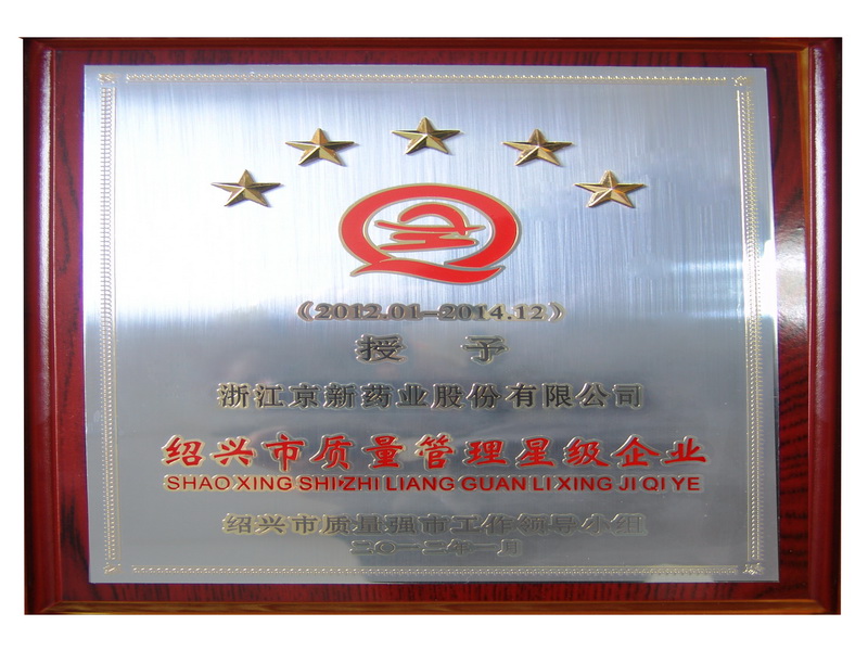 3月15日,,,,,绍兴市质量强市事情向导小组办公室揭晓了首批“绍兴市质量管理星级企业”奖牌,,,,,我公司荣获五星级企业殊荣。。。。。这是绍兴市第一次针对企业质量管理水平开展的评价运动,,,,,目的是激励企业学习、应用先进的质量管理理念、要领和技巧,,,,,指导宽大企业走质量强企业的生长蹊径。。。。。(黄国宝)