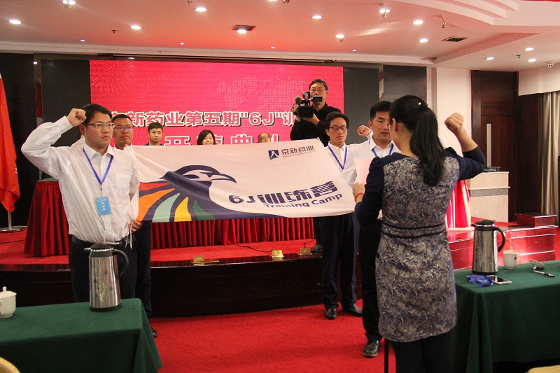 4月14日下昼,,,,,,,公司第五期6J训练营开营仪式在鹤群大旅馆天姥厅召开,,,,,,,公司总司理王能能、常务副总司理金志平、人力资源总监周晓峰、药品制造公司总司理陈绍碧及训练营合作机构量子大学总司理姜丽敏、首席运营官沈俊锋出席了本次仪式。。。。。