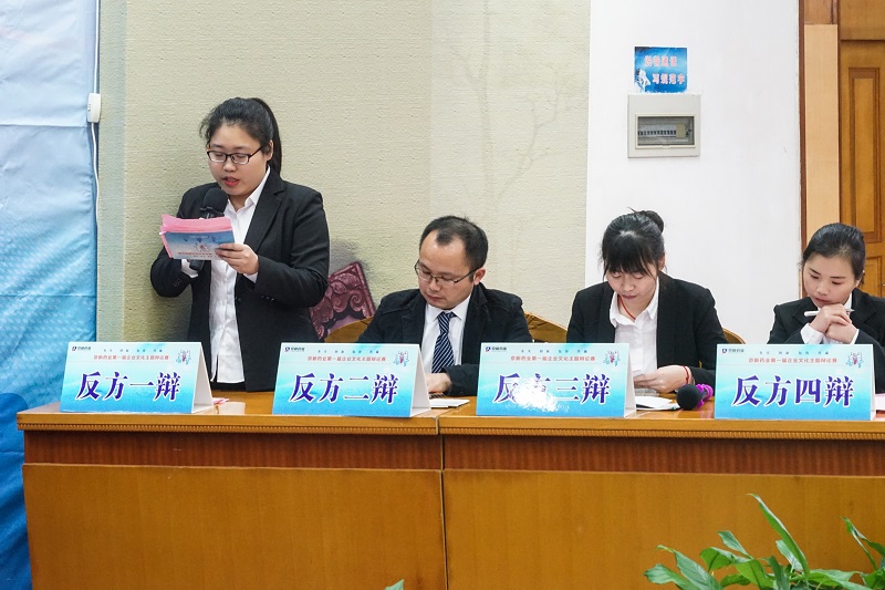 12月15日,,,,,,,,今年会官网药业第一届企业文化主题辩说赛半决赛准期举行,,,,,,,,经由预赛、加赛的强烈角逐,,,,,,,,四强步队脱颖而出,,,,,,,,为我们泛起了一次更为精彩的头脑碰撞。。。。。。。角逐特邀新昌中学原语文教学组组长、资深语文教育专家潘国仁先生、新昌中学原语文教学组组长、资深语文语言专家俞雅丽先生、新昌中学政教处副主任、政治先生王玉瑛、新昌中学语文先生梁珂菡及求旭丽、新昌中学政治先生张凤珍、公司党委副书记孔庆丰等向导出席并担当评委,,,,,,,,近200余员工现场观战。。。。。。。